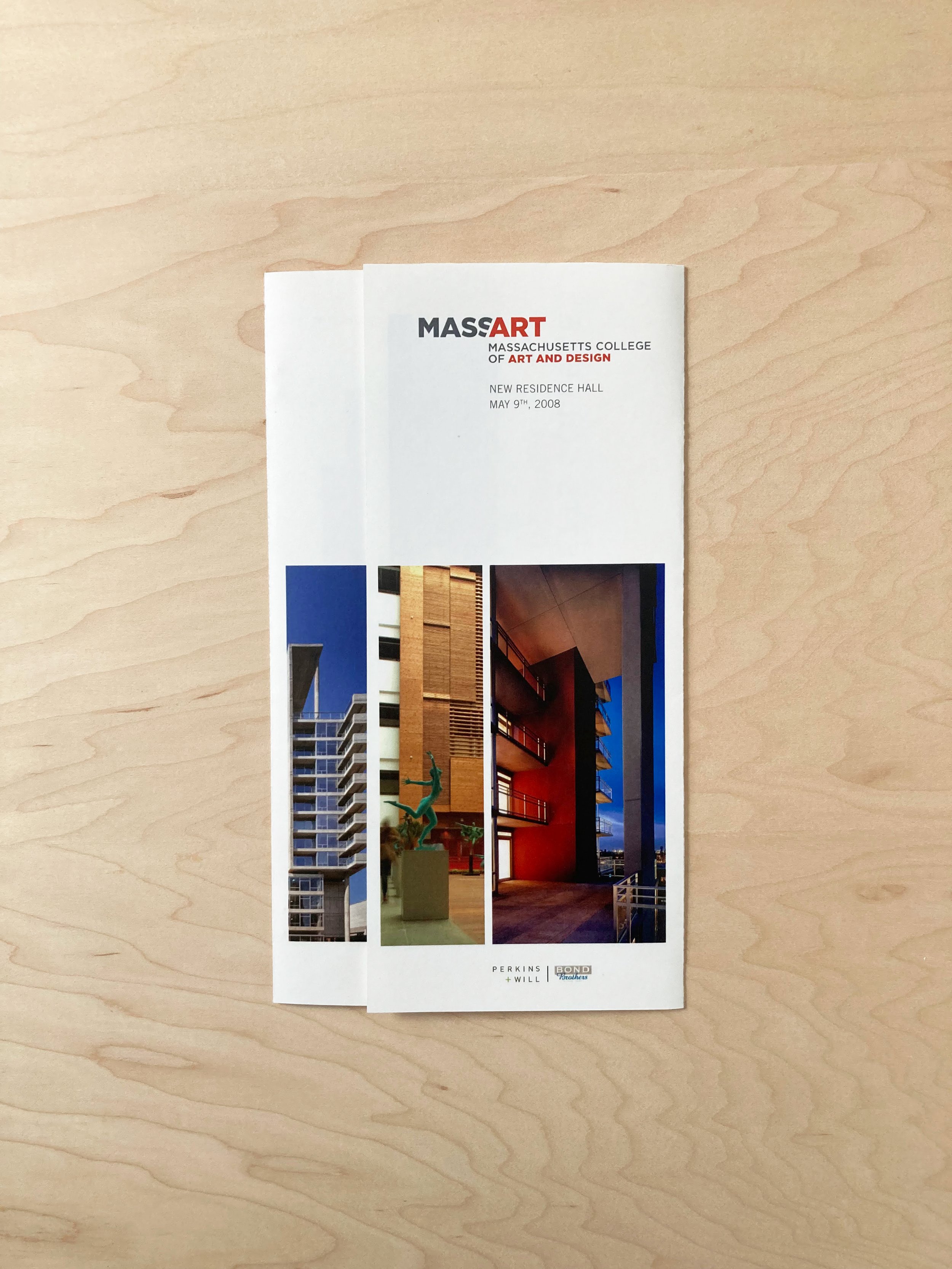 A large part of my work at Perkins+Will was to create small brochures for our architects to distribute while interviewing for commercial architecture work. This particular design was an office favorite and was presented during an interview with MassArt for a new residence hall.